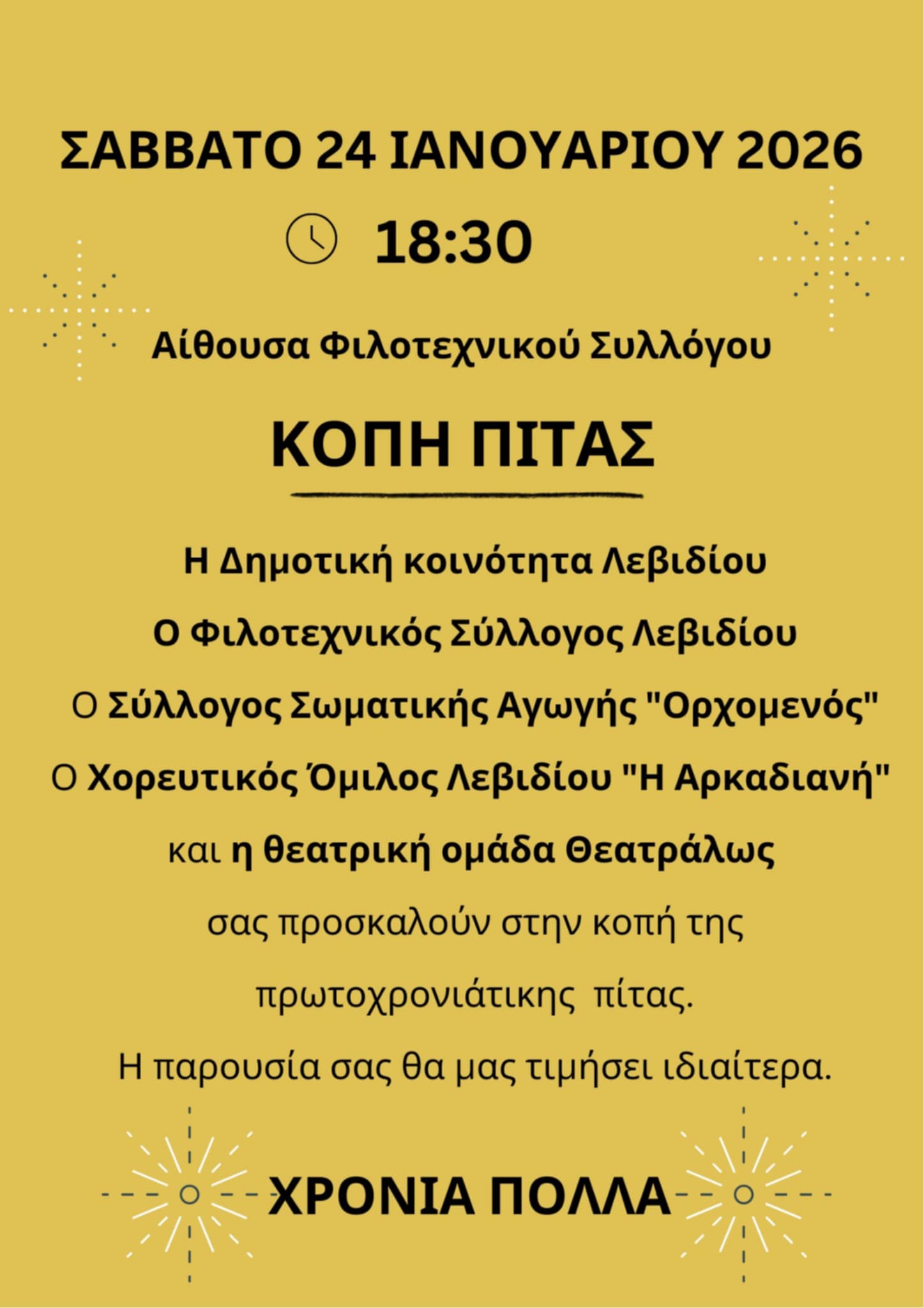 Κοπή πίτας Δημοτικής Κοινότητας & Συλλόγων του Λεβιδίου.